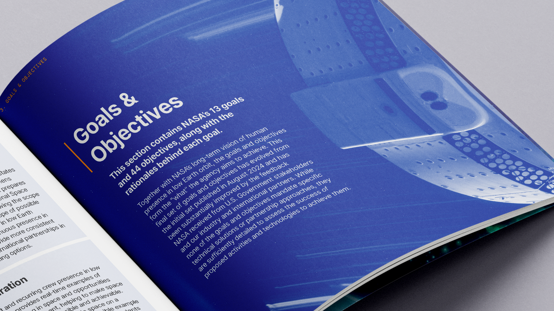 Partnering with David Rager, NASA’s creative director, with guidance from former NASA Deputy Administrator Pam Melroy, I illustrated the key art used for the LEO Microgravity Strategy cover as well as designing the document’s layout. While the key art brought a whimsical, dreamy feel to the exploration of low Earth orbit and beyond, the LEO Microgravity Strategy document incorporated clean, modern design elements paired with a simple color palette.
